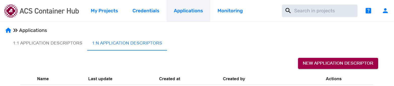 Open “Applications” -> “1:N Application Descriptors” page, click “New Application Descriptor” button