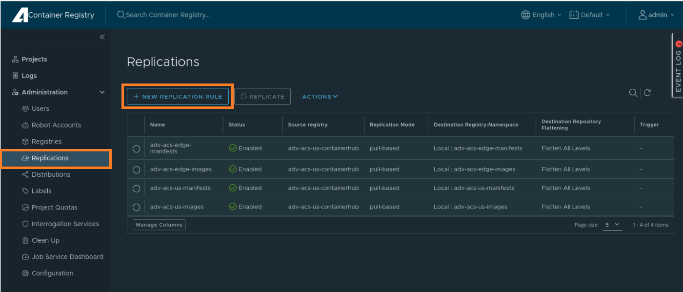 Note that: If you have modified app code and push new docker image to Container Hub, you need to manually trigger replication again from the “Replications” page or wait for the automatic replication done.