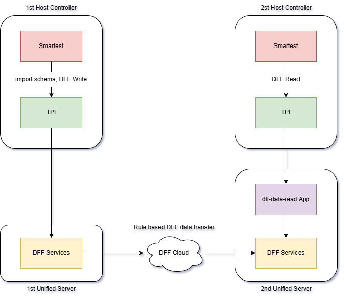 - Running the SmarTest Test Program on 1st Host Controller to generate test data and trigger DFF data transferring