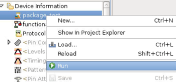 Load test program “package_dpat”: right-click on the Testprogram entry in the “Test Program Explorer” (located in the left panel) and then select “Load…”