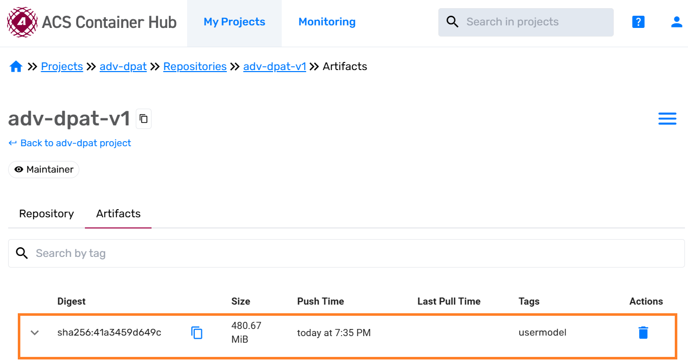 Build the docker image “adv-dpat” and upload it to ACS Container Hub.