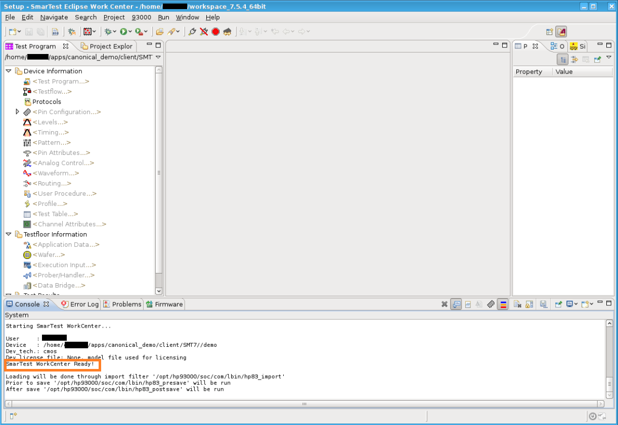 You are now in the SmarTest EWC workspace and should see “SmarTest WorkCenter Ready” in the console.