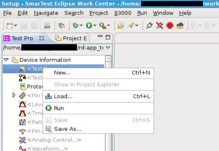 Load the test program “package_dpat”: right-click on the Testprogram entry in the “Test Program Explorer” (located in the left panel) and select “Load…”