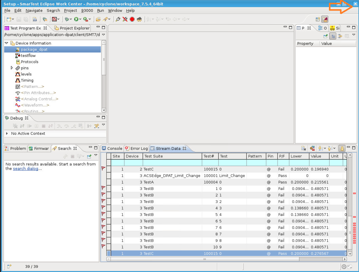 Run the test program “package_dpat”: Change to the “Test Program” view, right-click on “package dpat” and click “Run”.