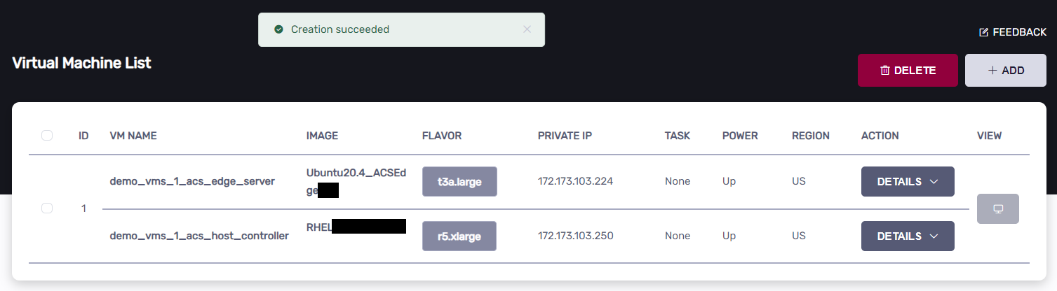Connect to the Host Controller VM by clicking the “VNC” or “SSH” under “ALL CONNECTIONS”