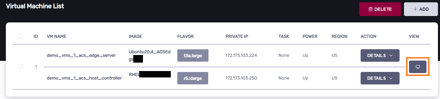 Click the “ADD” button at the top right of the “Virtual Machine” dashboard page
