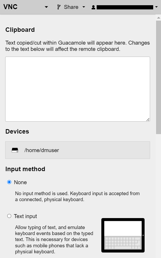 In VNC or SSH session, press Ctrl+Alt+Shift to open the management sidebar